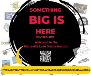 The auction is being sponsored by the Mariaville Civic Association for lake/dam management since Mariaville Lake gets no federal, state or local funding. All financial responsibilities are met through our membership and fundraising like this!